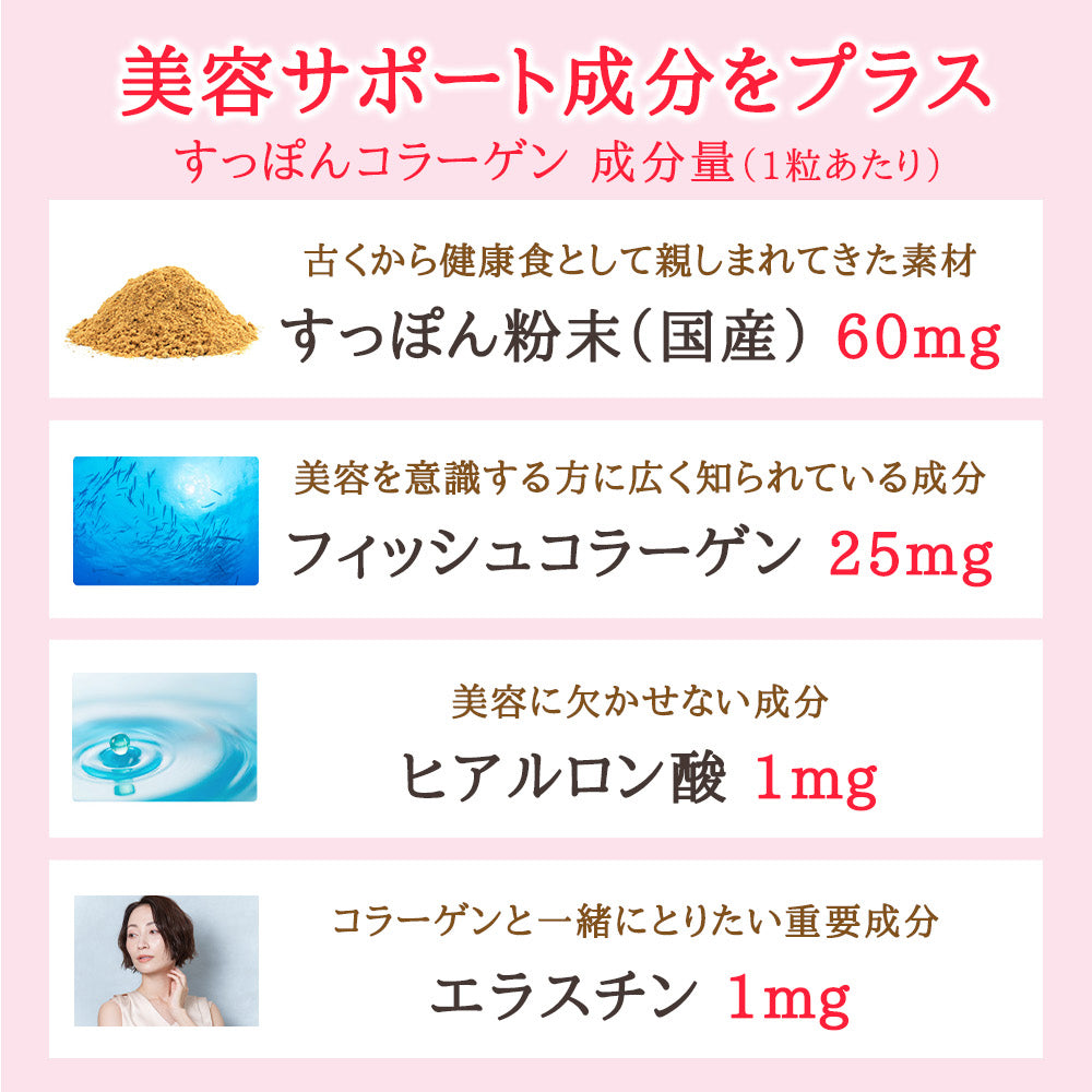 | 原材料 | スッポン粉末(国内製造)、ひまわり油、サフラワー油、フィッシュコラーゲンペプチド、アマニ油、加水分解タラエラスチン/ゼラチン、グリセリン、ミツロウ、グリセリン脂肪酸エステル、植物レシチン(大豆由来)、抽出ビタミンE、ヒアルロン酸 |